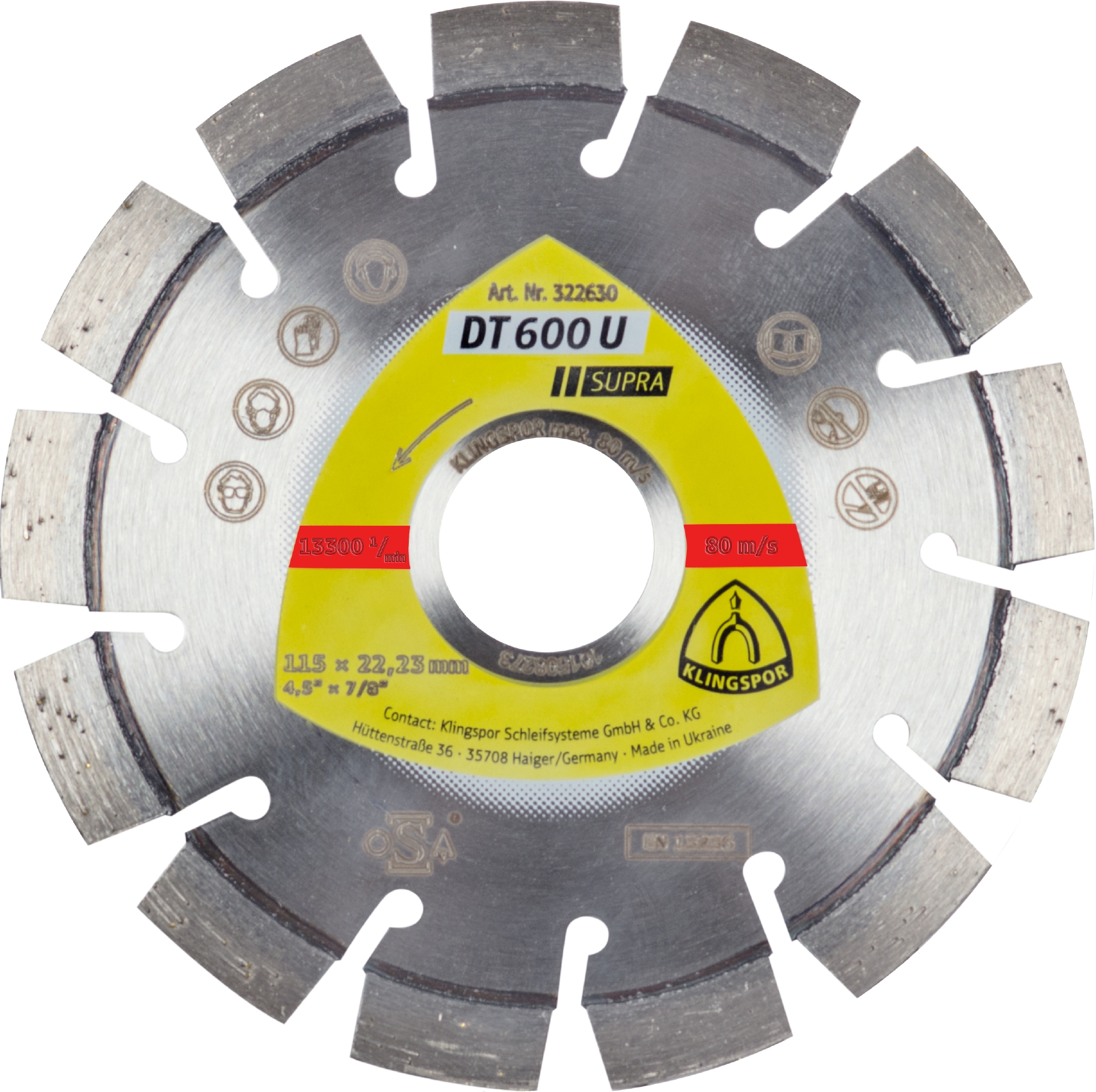 DT 600 U Discuri diamantate de debitare, 115 x 2,4 x 22,23 mm 13 Segmente 20 x 2,4 x 9 mm, segment scurt