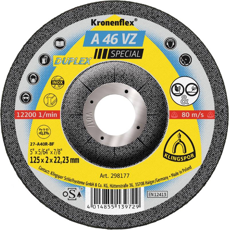 A 46 VZ Discuri polizare, 125 x 2 x 22,23 mm cu centru depresat