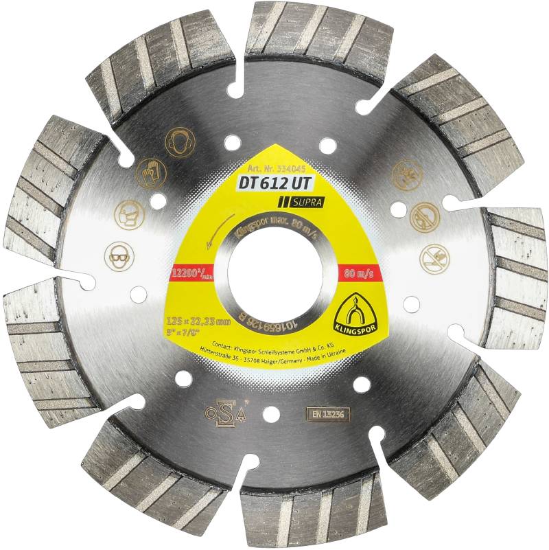 DT 612 UT Discuri diamantate de debitare, 125 x 2,4 x 22,23 mm 9 Segmente 33 x 2,4 x 12 mm, standard turbo