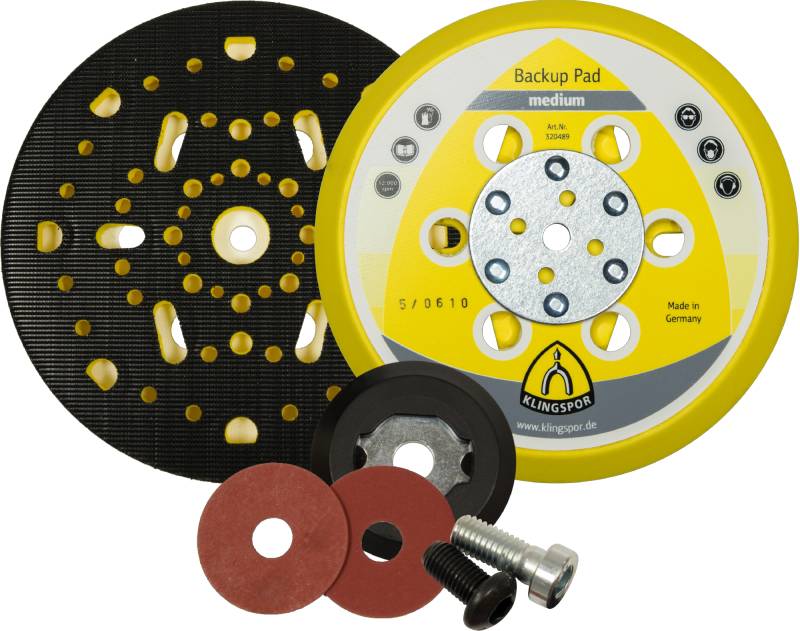Avantaje: aderență foarte bună pentru toate discurile cu fixare automată, datorită acoperirii fine rezistente la căldură, cu sistem de autofixare - pentru toate modelele standard de ștanțare, de asemenea, pentru modelele tip sită abrazivă precum și pentru diverse modele cu multiple găuri de ștanțare - compatibil cu toate șlefuitoarele orbitale standard...