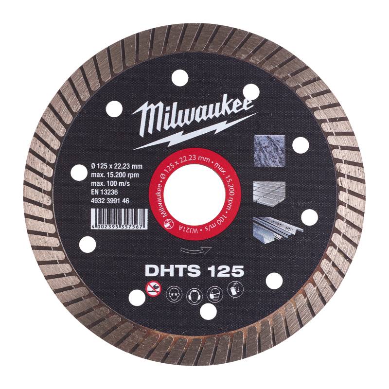 • Un disc turbo de calitate profesională, cu un corp foarte subțire pentru o debitare foarte rapidă, precisă și fără așchii în materiale subțiri precum granitul, marmura și plăci din porțelan, gresie, ceramică.