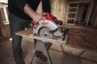 - Fierăstrău circular cu motor fără perii M18™ , cu o pânză de 190 mm ce asigură o adâncime de tăiere de 66 mm și care îi permite fierăstrăului să debiteze trei plăci stivuite de OSB de 19 mm