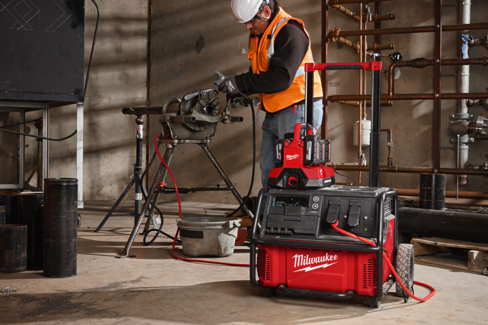 • Roțile și mânerul telescopic oferă putere portabilă oriunde și sunt pregătite pentru șantier
