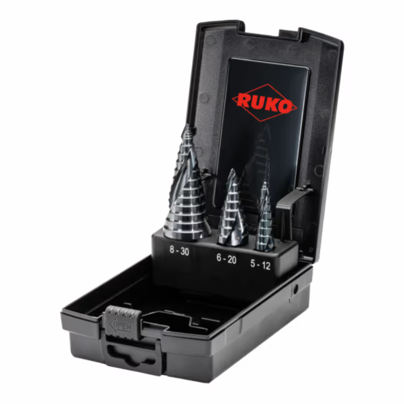Set de burghie în trepte ULTIMATECUT cu vârf FLOWSTEP® HSSE-Co 5 RUnaTEC în cutie de plastic - 3 BUC