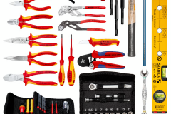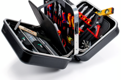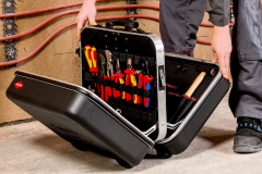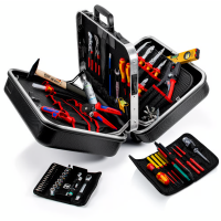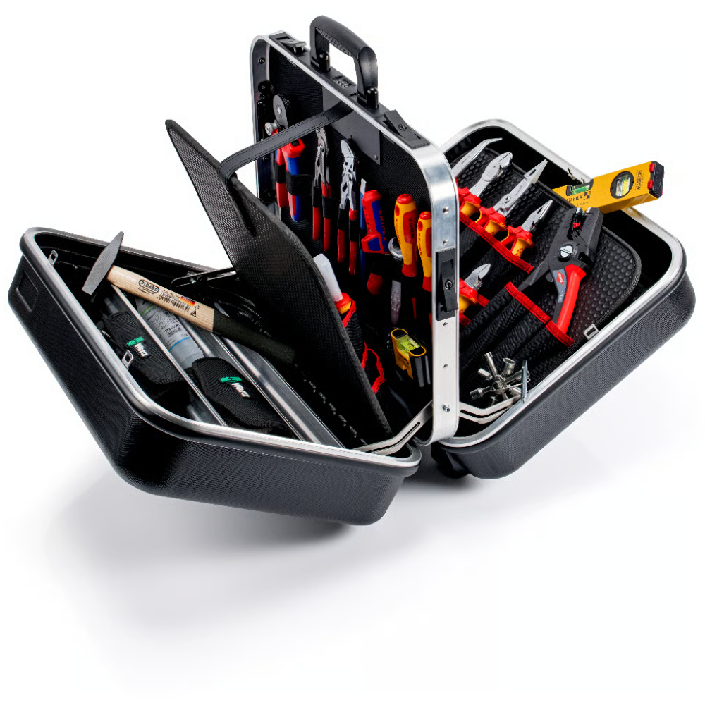 • Echipată cu 14 scule KNIPEX, un total de 63 de scule de marcă, parțial testate VDE conform DIN EN 60900