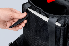 • Capac multifuncțional: se derulează înapoi pentru acces ușor la scule și are prindere cu buclă și scai pentru etichetare individuală