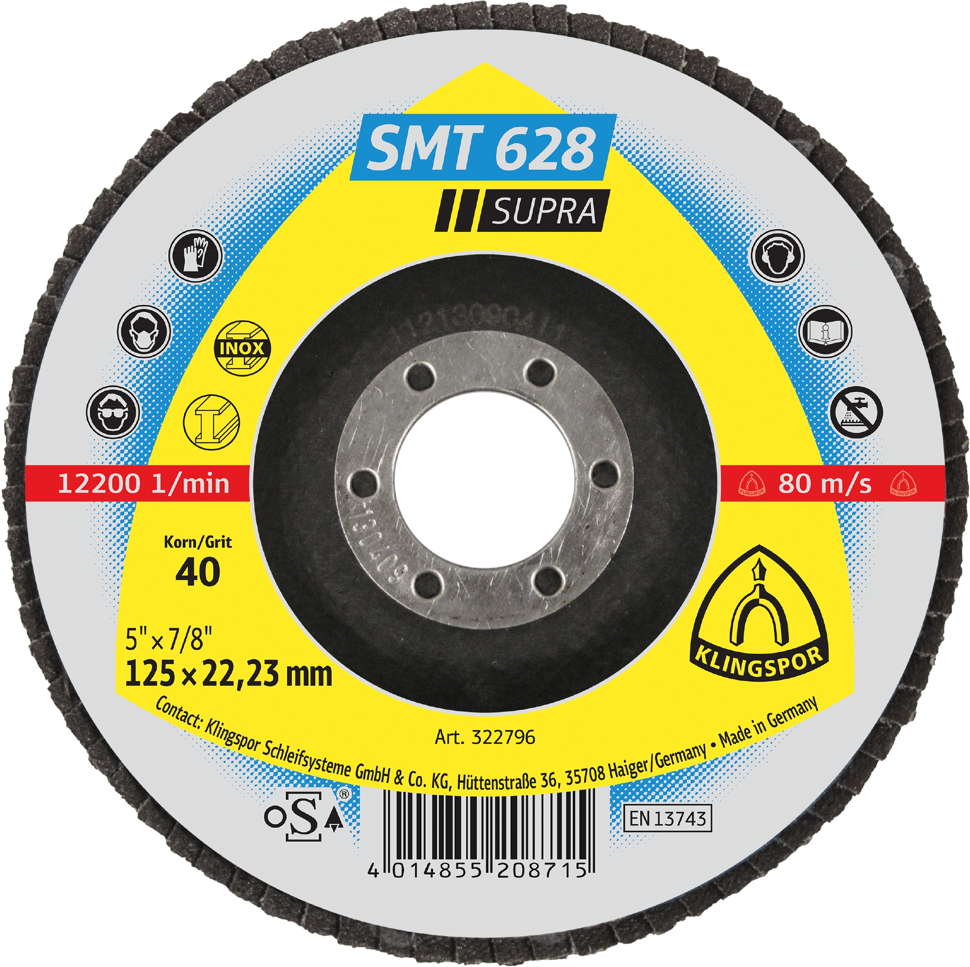 SMT 628 Discuri lamelare frontale, 125 x 22,23 mm Granulă 40 Drept